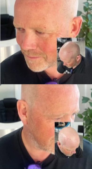 Scalp scarring can profoundly impact self-confidence and emotional well-being. For many, these visible reminders trigger distress or feelings of self-consciousness. Scalp Micropigmentation (SMP) for scar camouflage offers a transformative solution. Our specialized technique precisely blends pigment to match your natural hairline and mimic the appearance of real hair follicles. Whether your scars result from hair transplant surgery, injury, burns, or other trauma, SMP effectively conceals them, creating the look of a fuller, shaved head. Restore your appearance and reclaim your confidence with expert scar camouflage.